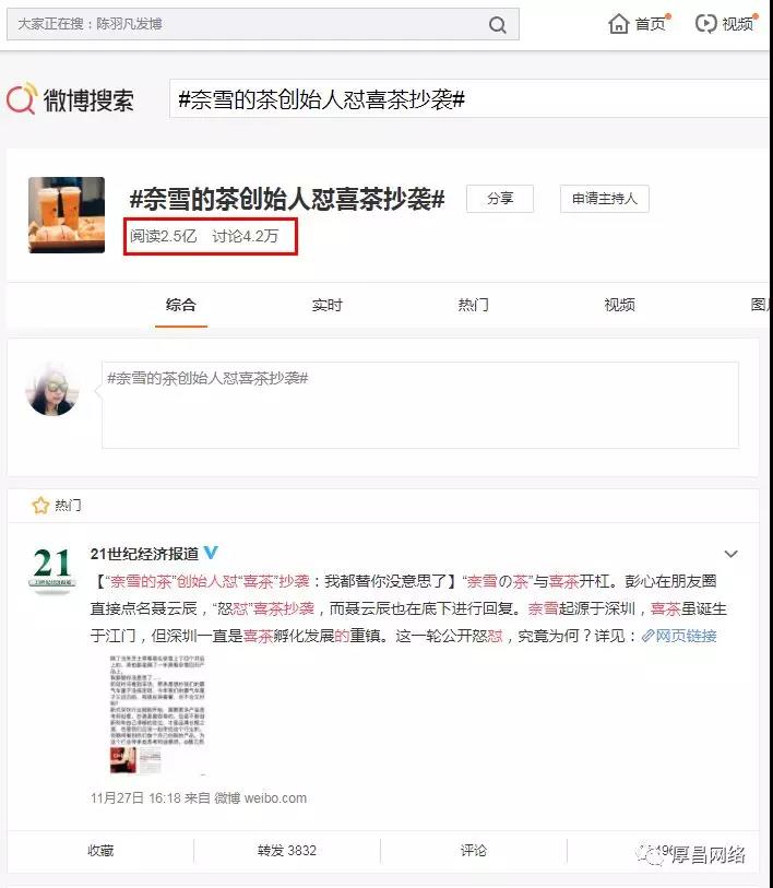 今天,微博熱搜上就出現(xiàn)了關(guān)于新式茶飲行業(yè)的話題#奈雪的茶創(chuàng)始人懟喜茶抄襲#,我們來回顧下事情的始末: