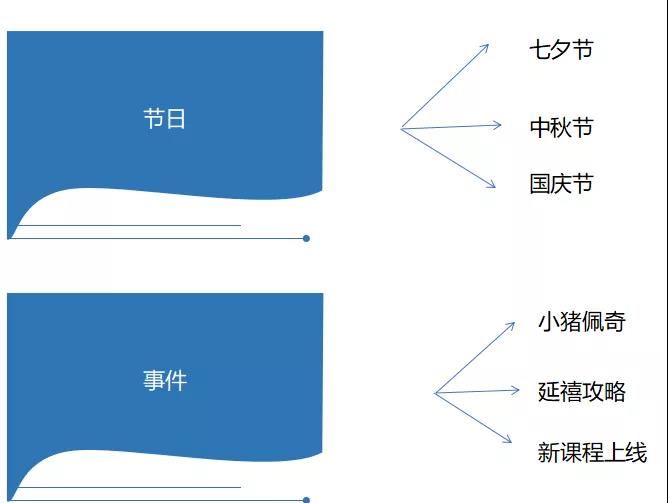 節(jié)日可以圍繞國家法定節(jié)假日(七夕節(jié)、中秋節(jié)、國慶節(jié))也可以是人造節(jié)日(618、雙十一、會員日等)來制造節(jié)日活動。