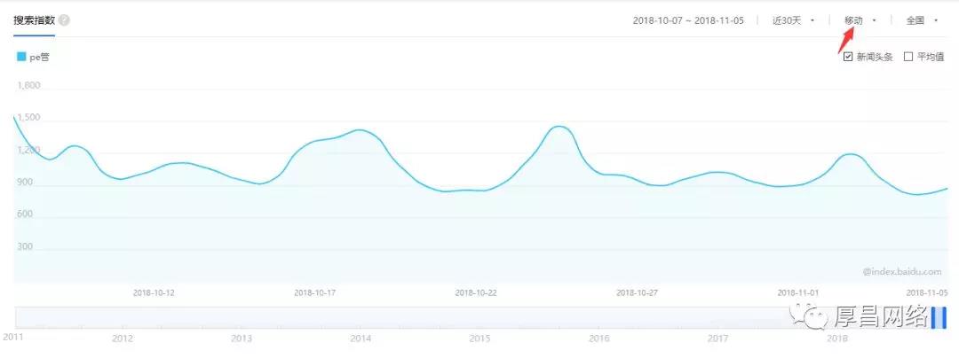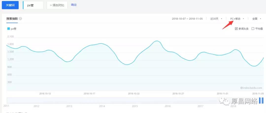從上面三張圖我們可以看出來:傳統(tǒng)PE管行業(yè)整體指數在1500左右,PC端搜索與移動端分別為300左右和1500左右,這時我們就需要把更多預算放在移動端切記不要死磕PC端。